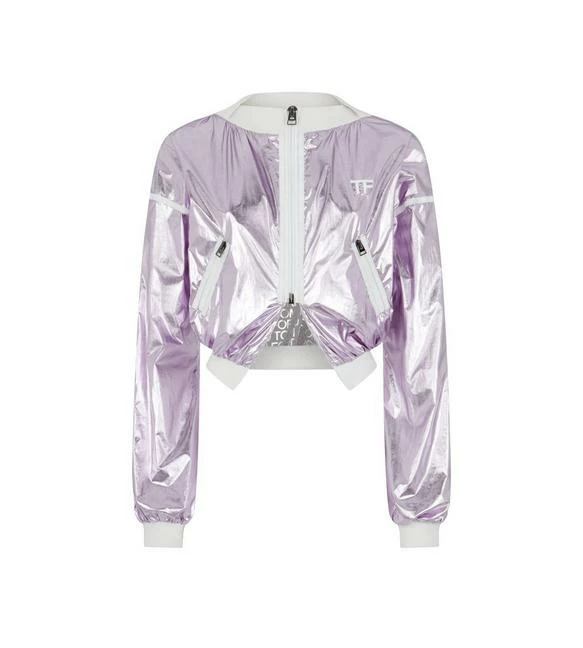 LAMINATED TECHNICAL NYLON CROPPED TRACK JACKET