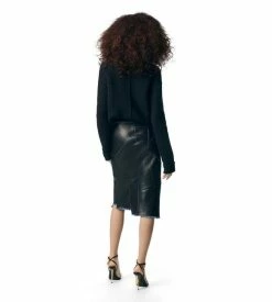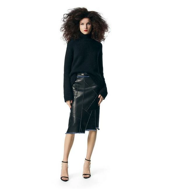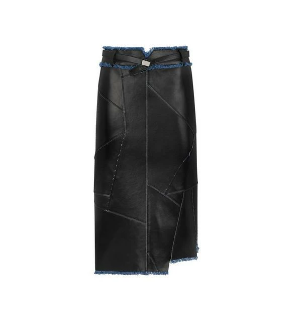 NEW PLONGE LEATHER & STONE WASHED DENIM ASYMMETRIC SKIRT