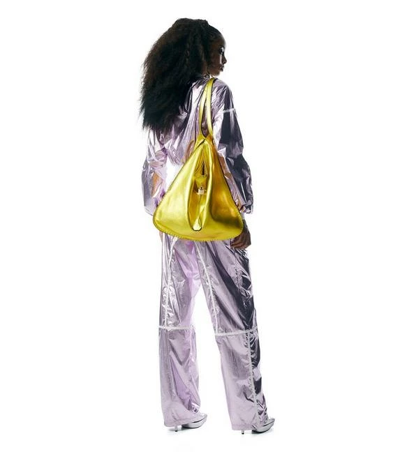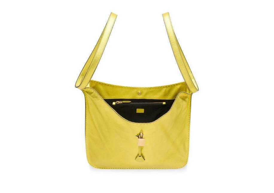 LAMINATED LEATHER PADLOCK LARGE SHOULDER BAG