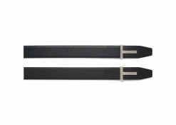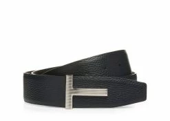 TOM FORD LEATHER PALLADIUM T RIDGE BELT – DARK NAVY + BLACK