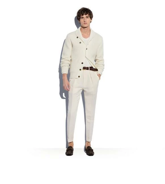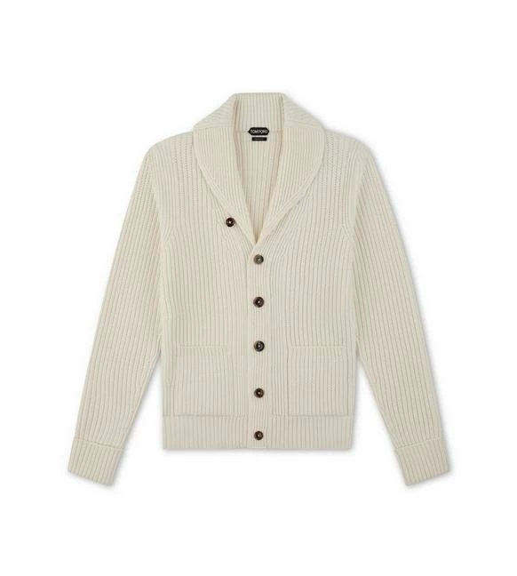 TOM FORD LINKED RIB SHAWL COLLAR CARDIGAN – WHITE