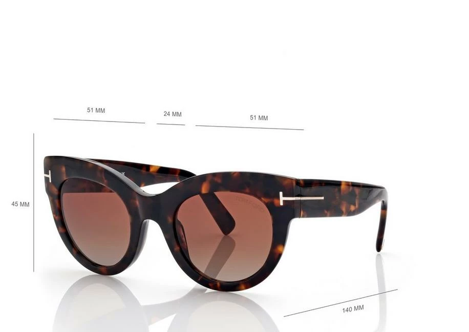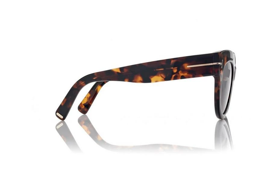 Feminine cat eye style in acetate with bold design and characterized by metal T logo decoration