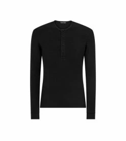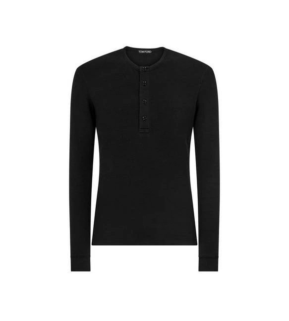TOM FORD LYOCELL COTTON RIB HENLEY – BLACK