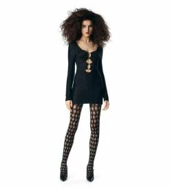 - LONG SLEEVE KNITTED MINI DRESS