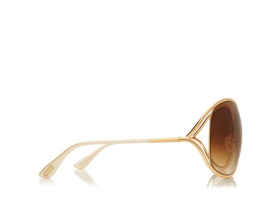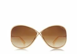 - Shiny rose gold metal frame with shiny pearled ivory plastic temple tips and gradient brown lenses with anti-reflection