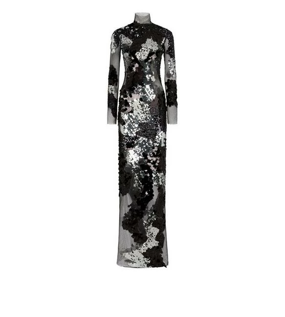 MIXED SEQUINS EMBROIDERY ON MESH EVENING DRESS