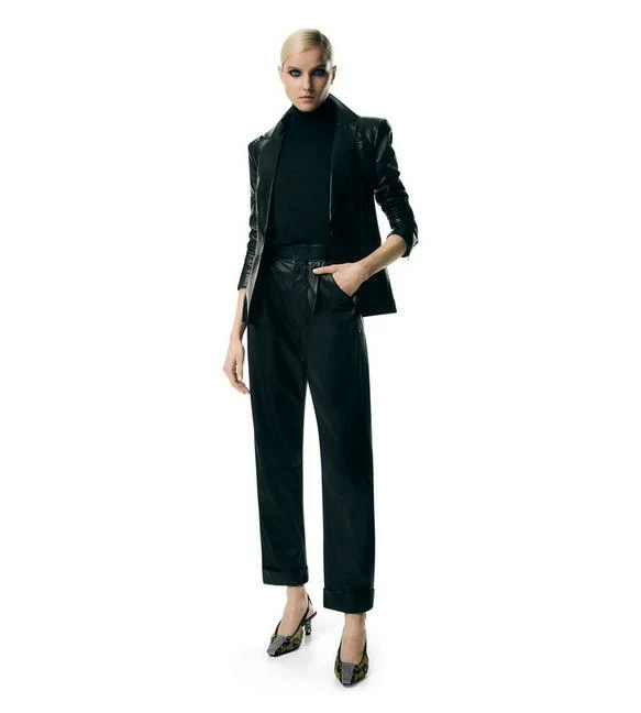 - LEATHER TAILORED PANTS WITH FRONT PLEATS