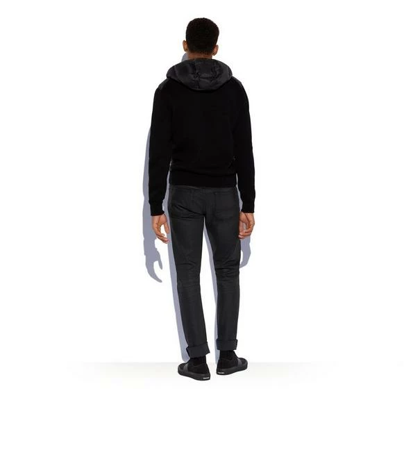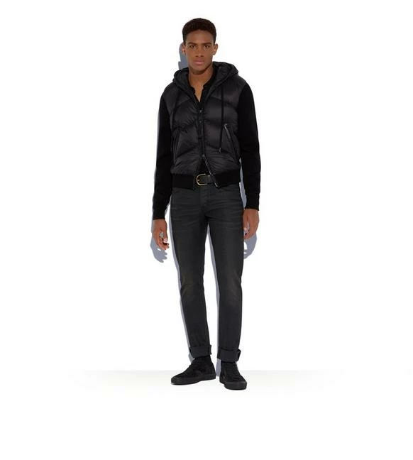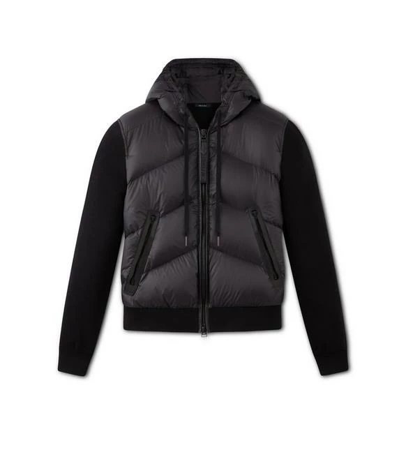 - KNITTED COTTON CASHMERE WITH NYLON DOWN FRONT AND HOOD