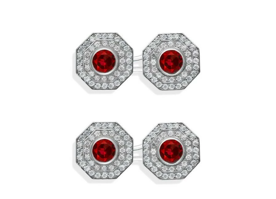 THE ULTIMATE LUXURY-PAIR OF DIAMOND AND RUBY OR SAPPHIRE OCTAGONAL CUFFLINKS SET IN WHITE GOLD.