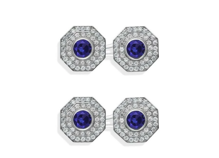 THE ULTIMATE LUXURY-PAIR OF DIAMOND AND RUBY OR SAPPHIRE OCTAGONAL CUFFLINKS SET IN WHITE GOLD.