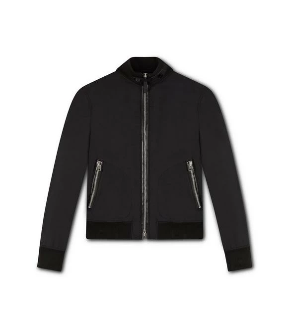 NAVY NYLON BLOUSON WITH KNIT TRIMS