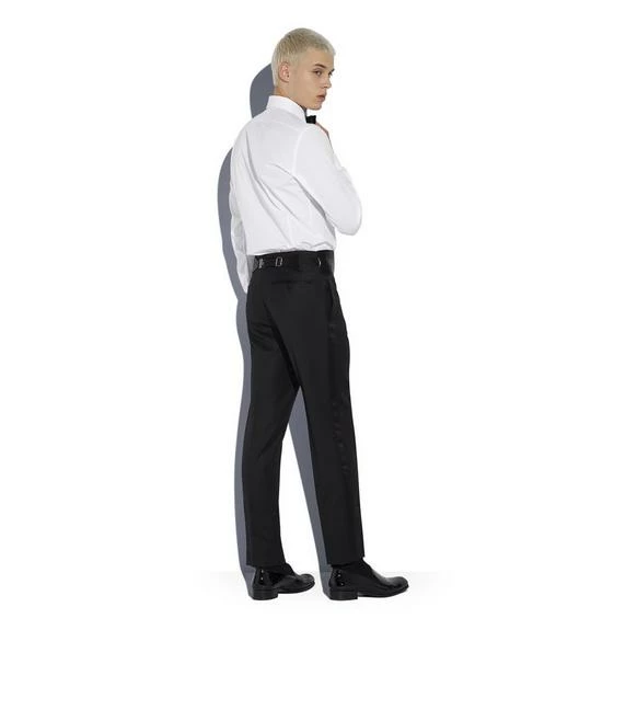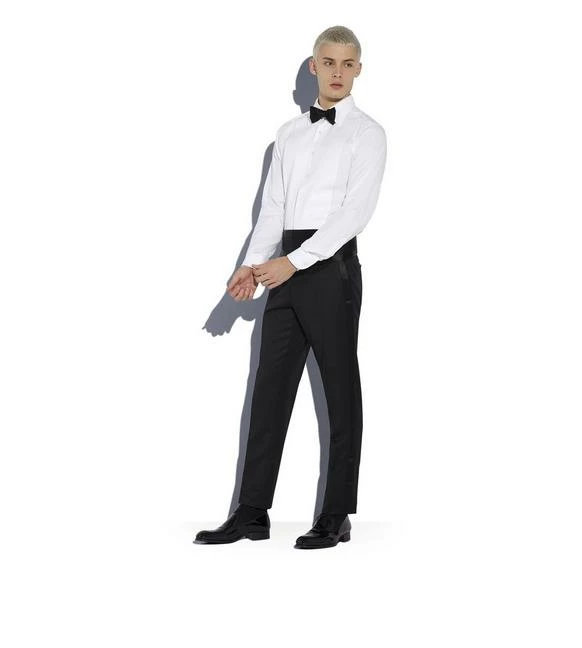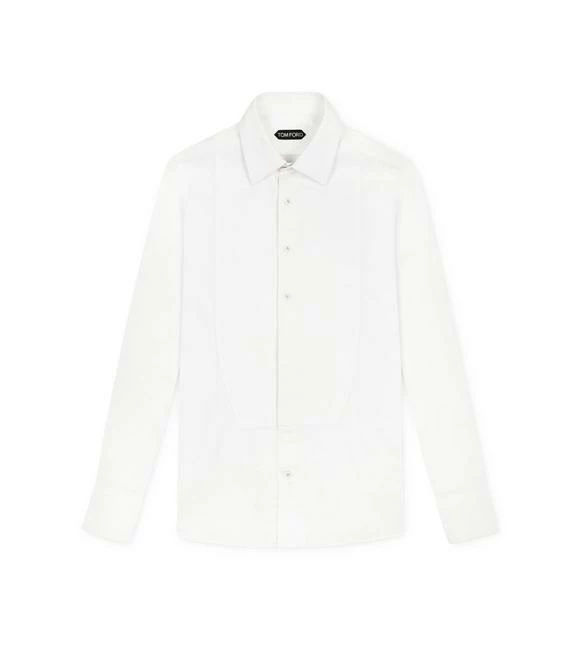 A SIGNATURE TOM FORD WHITE EVENING SHIRT WITH PIQUET PLASTRON, A SLIM FIT AND A SINGLE FRENCH CUFF.