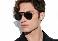 Trendy pilot style in metal enriched by acetate top bar and metal ‘T’ temple decoration.