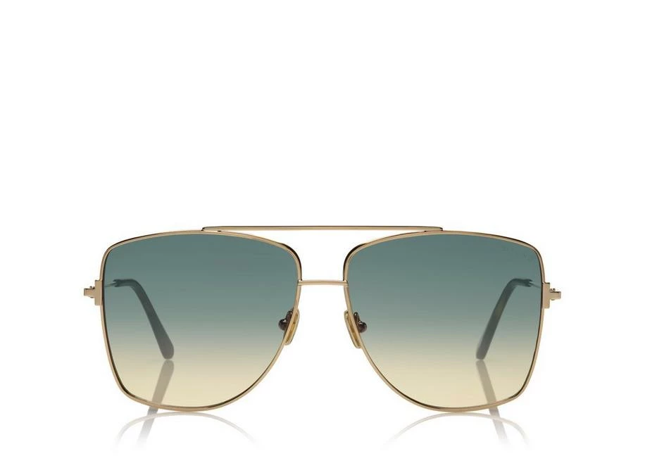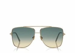 Squared oversize metal style characterized by double bridge and metal T logo decoration.