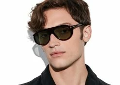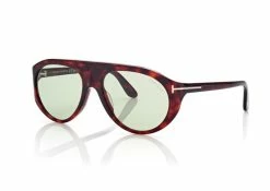 Modern pilot style in acetate with metal ‘T’ temple decoration. Photocromic lenses on the following colors: VINTAGE HAVANA AND RED HAVANA
