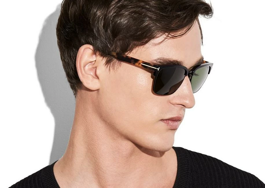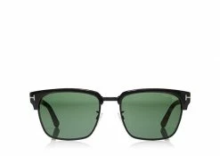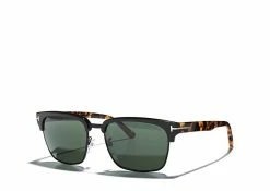 - Shiny black acetate front and shiny tortoise temples with shiny palladium metal T logo and metal matte black bottom part. Green and antireflecting