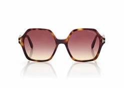 Geometric feminine style totally in acetate characterized by tapered temples enriched by metal T logo decoration.