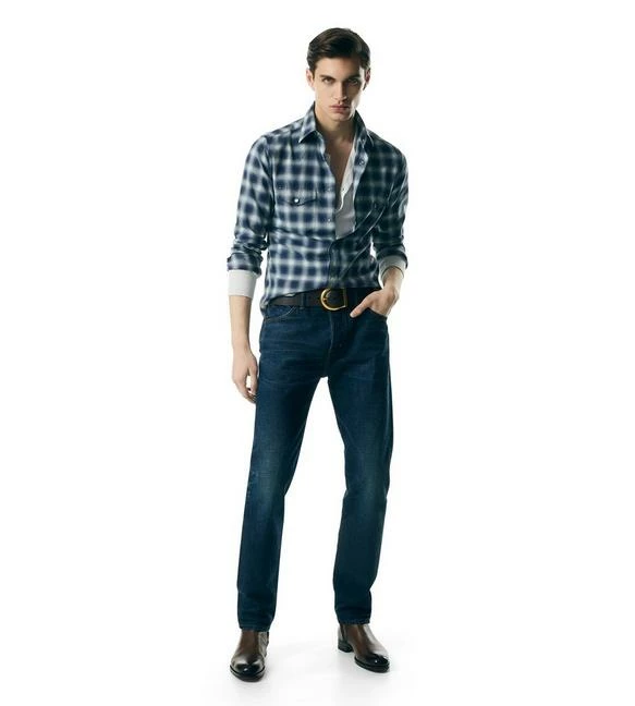 TOM FORD SHADOW CHECK WESTERN SHIRT – COMBO DARK BLUE WHITE