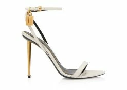 SHINY LEATHER PADLOCK POINTY NAKED SANDAL