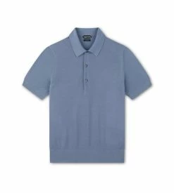 TOM FORD SILK COTTON PIQUET POLO – PALE BLUE