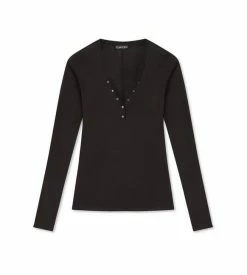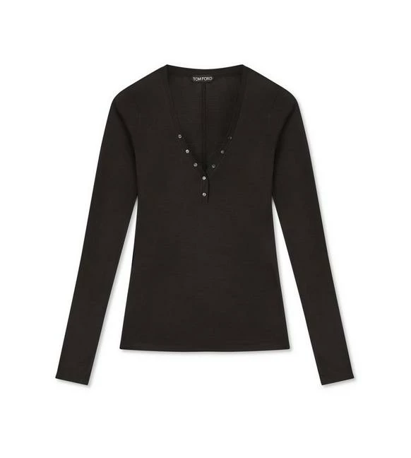 A HENLEY TOP WITH A SLIM FIT, TONAL TF SCREW SNAPS AND A TOM FORD LABEL. CRAFTED OF SILK WOOL JERSEY.