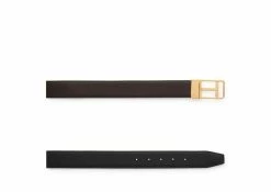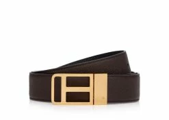 SMALL GRAIN LEATHER REVERSIBLE FRAMED T BELT