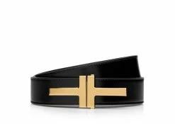 TOM FORD SMOOTH LEATHER DOUBLE T BELT – BLACK