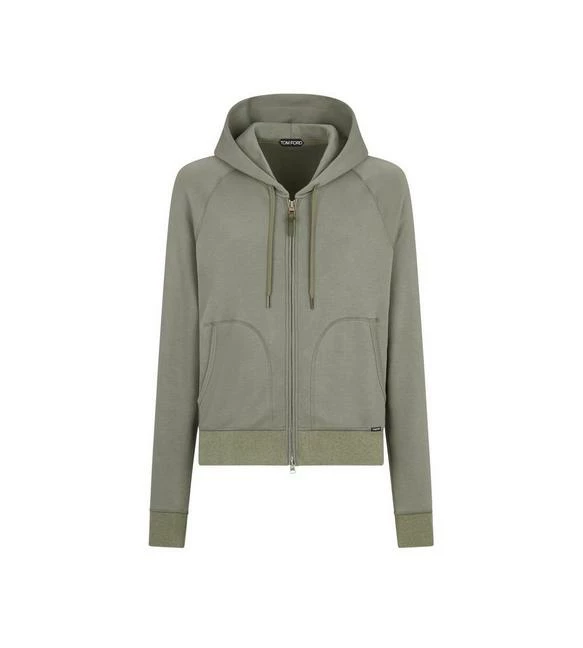 TOM FORD SOFT COTTON HOODED ZIP THROUGH – ARMY GREEN