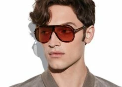 - Shiny acetate style with metal ‘T’ logo decoration.