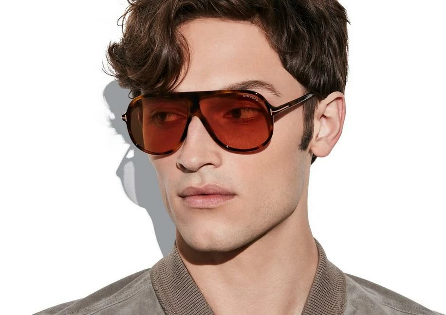 Oversize pilot acetate style with metal ‘T’ temple decoration.