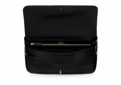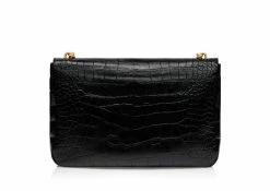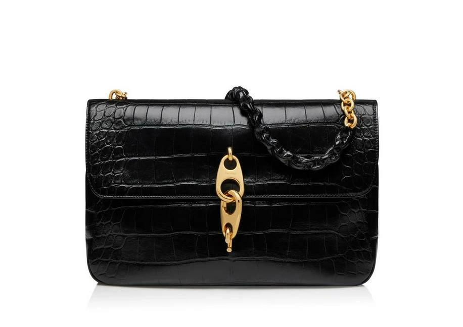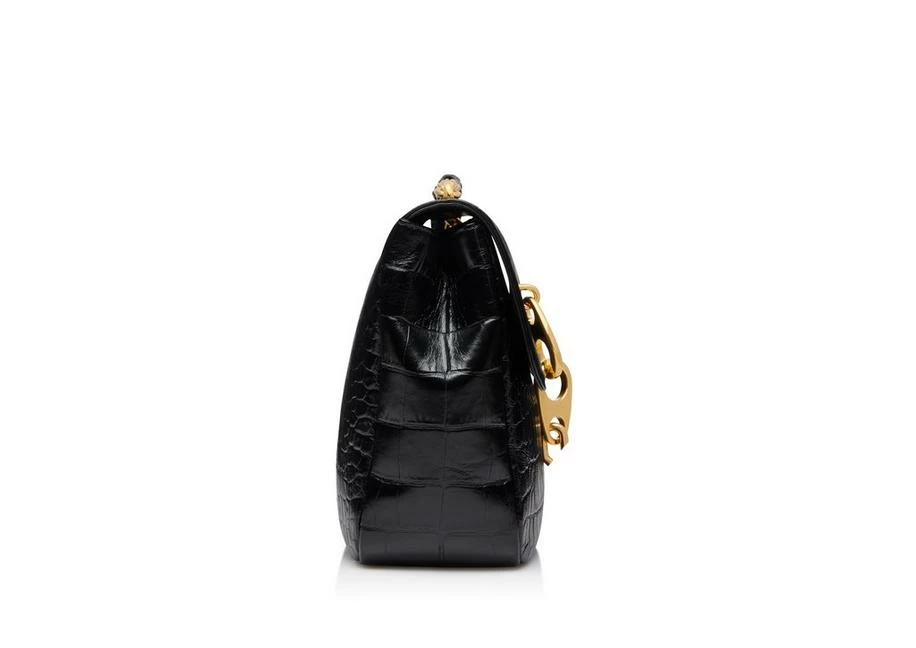 SHINY STAMPED CROCODILE LEATHER CARINE LARGE SHOULDER BAG