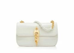 SHINY STAMPED CROCODILE LEATHER CARINE MEDIUM SHOULDER BAG