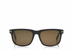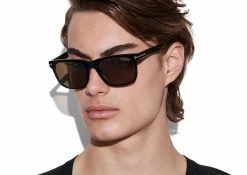 Soft squared acetate style enriched by metal ‘T’ logo decoration on the temple.