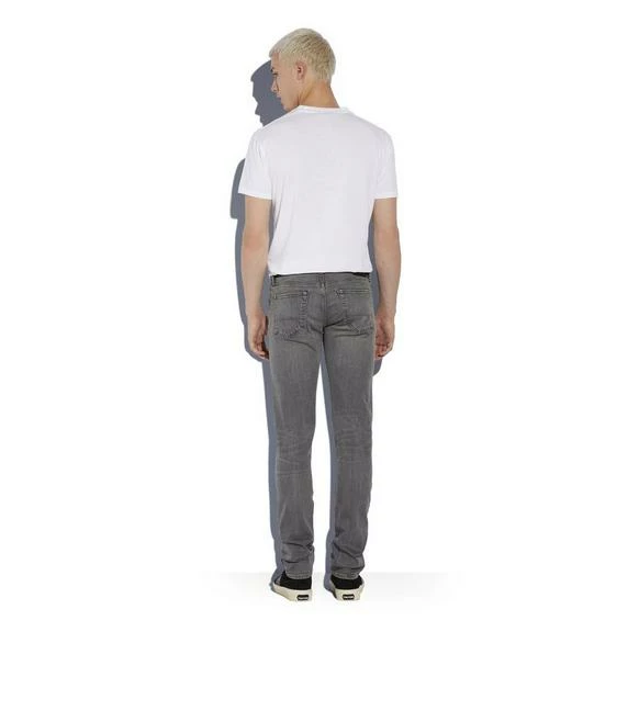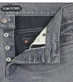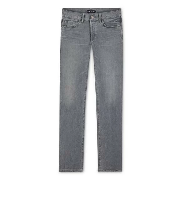 AN AMERICAN-MADE PAIR OF STRAIGHT SELVEDGE JEANS. FEATURING A TRADITIONAL FIVE-POCKET DESIGN, TOM FORD TACK BUTTONS AND A SHINY LEATHER BACK TAB.