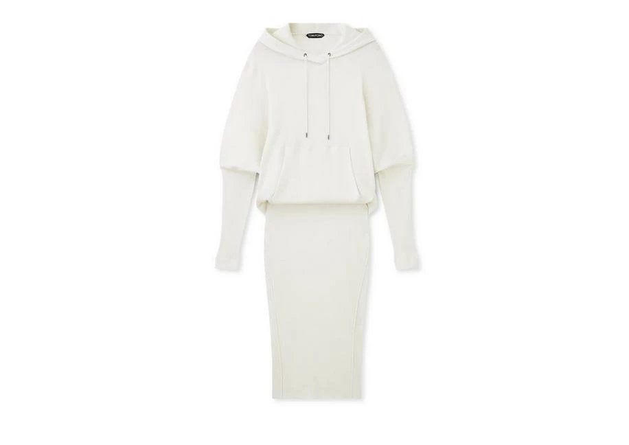 TOM FORD STRETCH CASHMERE RIB HOODED DRESS – CHALK