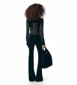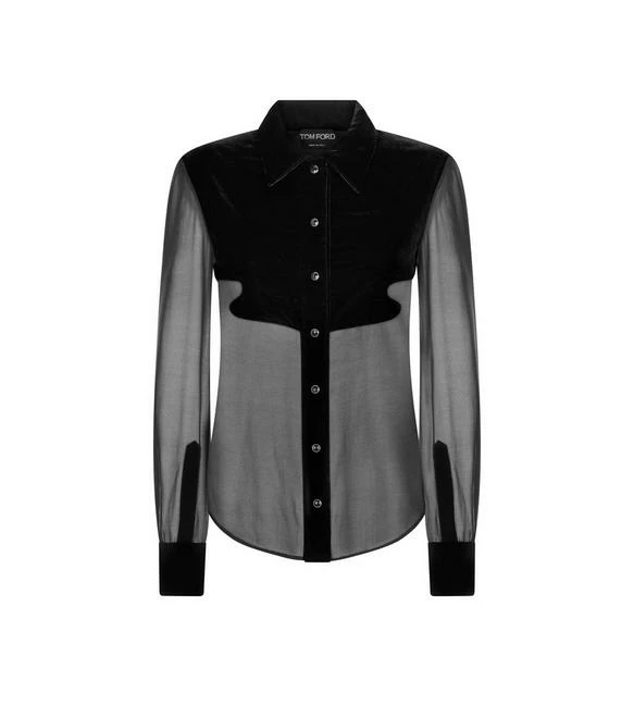 STRETCH GEORGETTE SHIRT WITH VELVET INSERTS