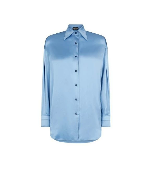 TOM FORD STRETCH SILK SATIN RELAXED FIT SHIRT – LIGHT AVIO