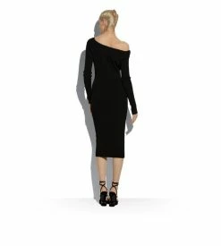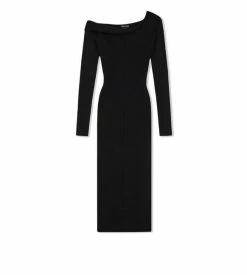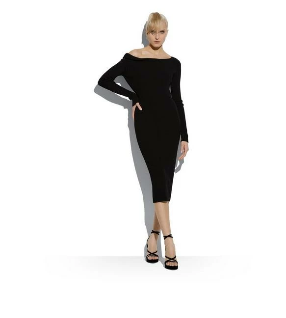 STRETCH WOOL RIB OFF THE SHOULDER DRESS