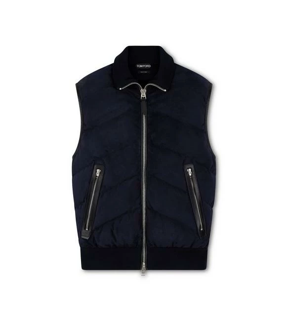 SUEDE DOWN FRONT MERINO ZIP GILET