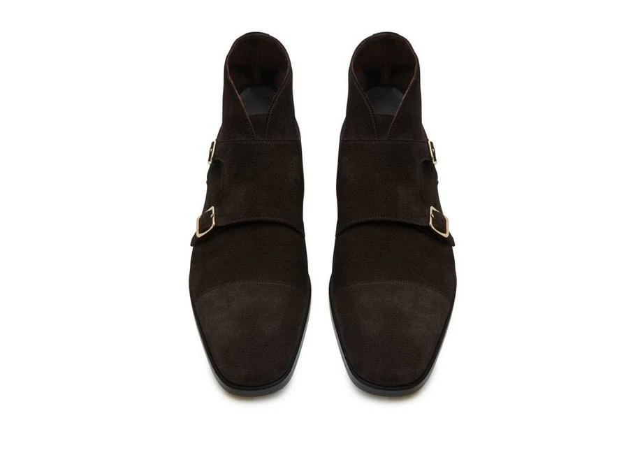 TOM FORD SUEDE ELKAN DOUBLE MONK STRAP BOOT – DARK EBONY