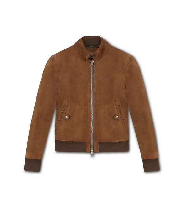 BROWN LIGHTWEIGHT SUEDE HARRINGTON JACKET
