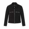 - HALF LOZENGE LEATHER DETAIL WITH HORN BUTTON FASTENING ALONG COLLAR