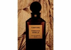 “Tobacco Vanille is opulent, warm and iconic. Reminiscent of an English Gentleman’s Club and blended with rich spices, vanilla and tobacco flower, it leaves a powerful impression.” –TOM FORD