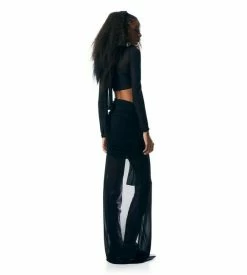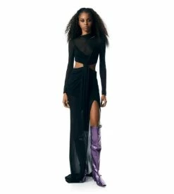 TRANSPARENT CREPE JERSEY CUT-OUT EVENING DRESS