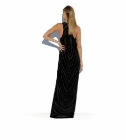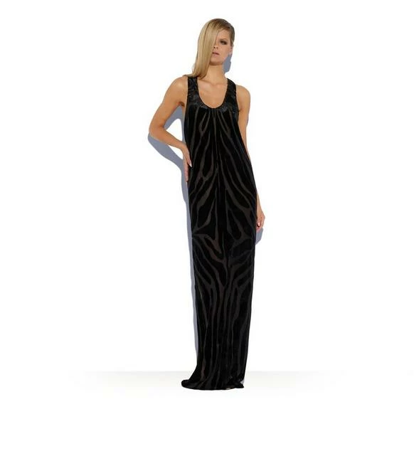 - SLEVELESS SCOOP NECK EVENING DRESS IN DEVORE’ ZEBRA MOTIF