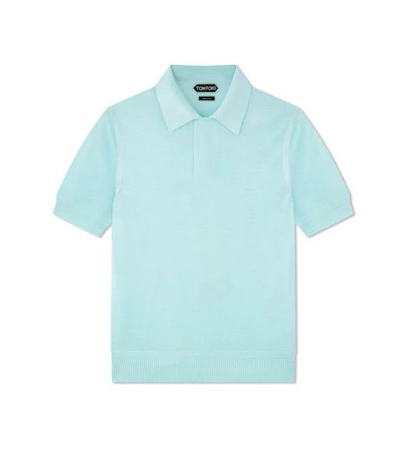 TOM FORD VISCOSE SILK MICRO TEXTURE POLO – CELESTE BLUE