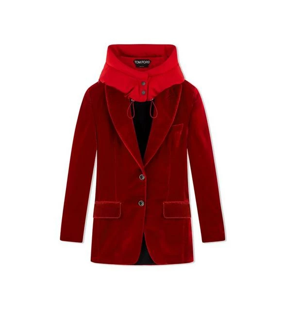 VISCOSE VELVET BOYFRIEND HOODED JACKET