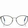 Stylish cat-eye acetate frame with contemporary minimalist design and characterized by metal T logo decoration