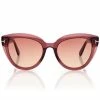 Stylish cat-eye acetate frame with contemporary minimalist design and characterized by metal T logo decoration