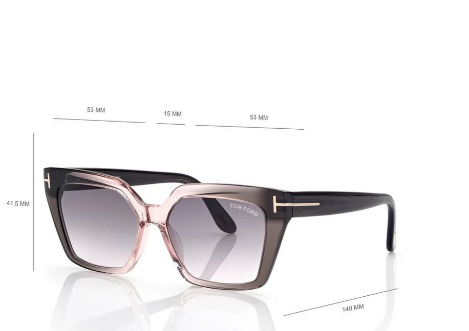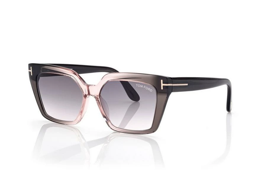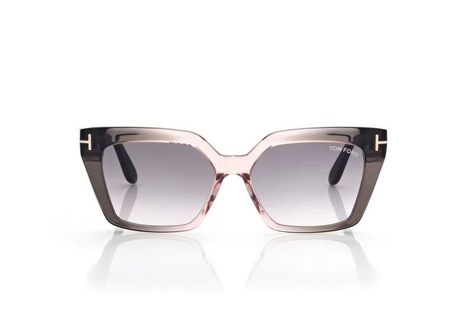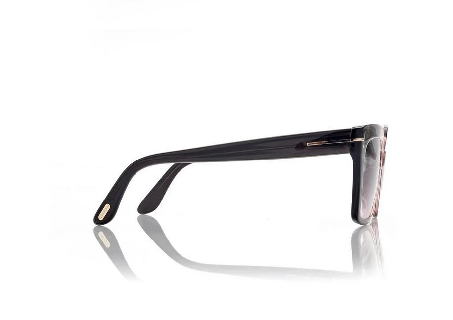 Stylish cat-eye acetate frame with contemporary minimalist design and characterized by metal T logo decoration